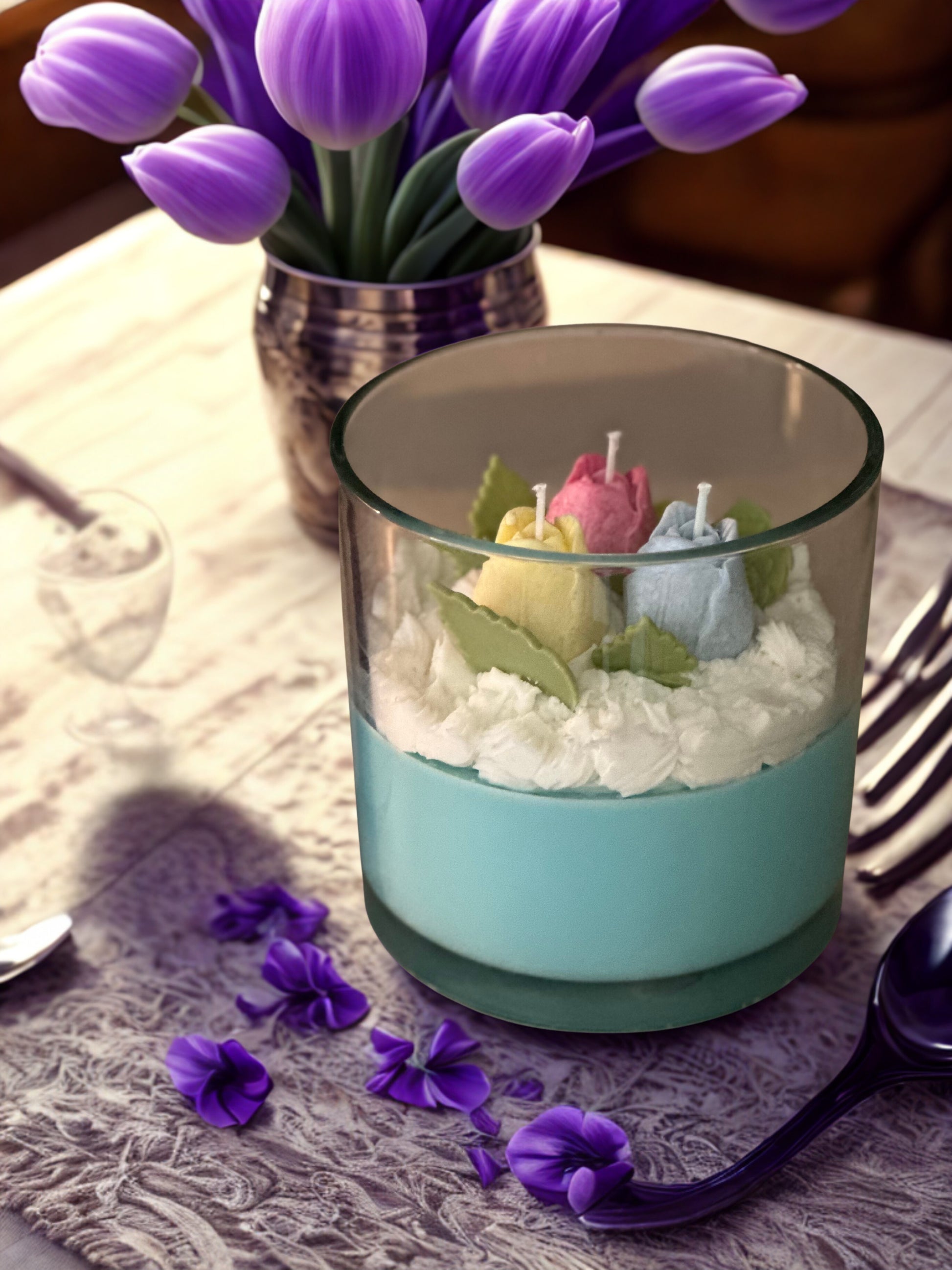 This elegant 3-wick candle features three delicate tulips arranged inside a clear 6" wide by 7" tall vase. Unscented for versatility, it provides a clean, ambient glow ideal for enhancing any space without overpowering fragrances. The clear vase showcases the floral design, making it a sophisticated centerpiece or gift choice.
