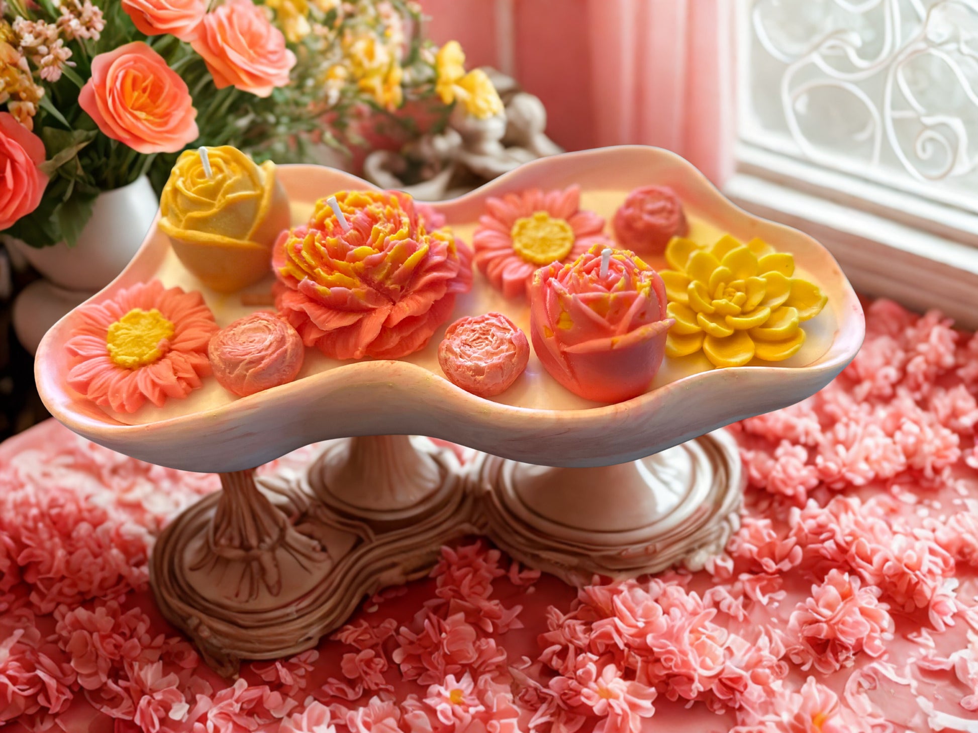 Coral and Yellow Floral Head Candle Tray