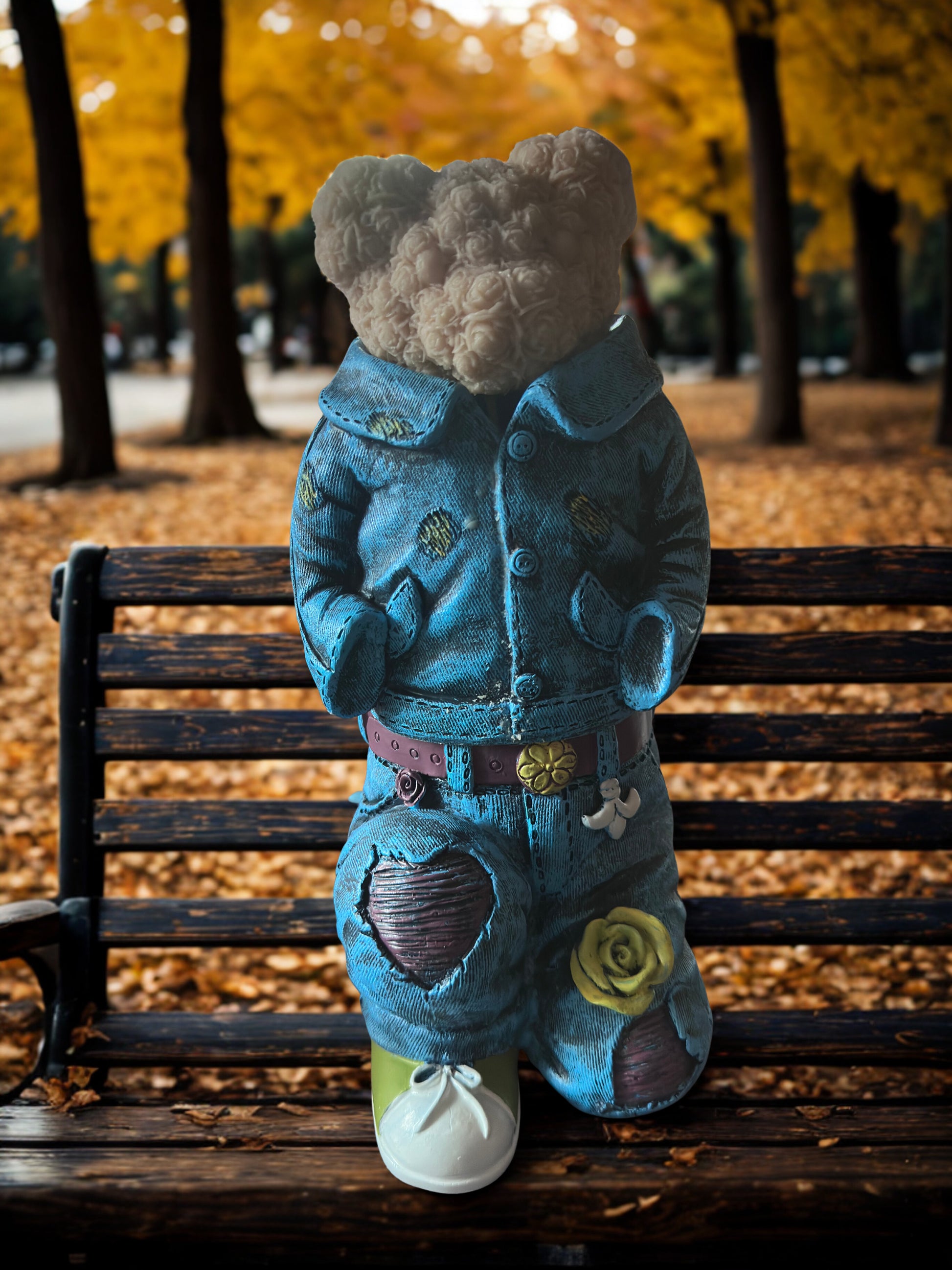 Pair it with the matching denim jacket topped with a teddy bear head (sold separately) to complete the outfit!