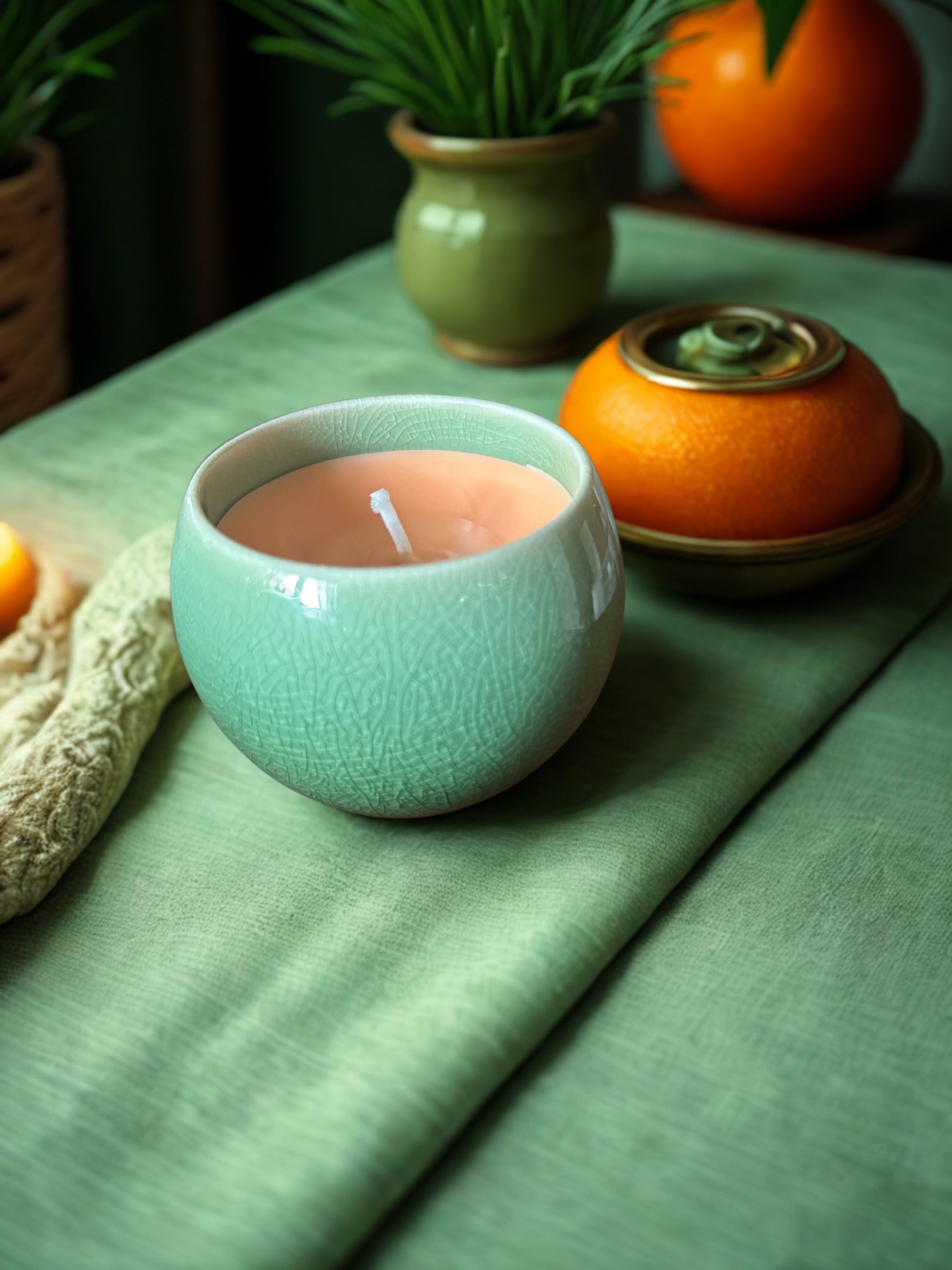 This elegant jade-colored cup holds a 2-ounce candle infused with a refreshing sweet orange scent. Perfectly sized for subtle ambiance, it offers a clean, citrus fragrance that enhances any space with a bright, uplifting atmosphere. Ideal for those seeking a sophisticated, aromatic experience in a compact form.